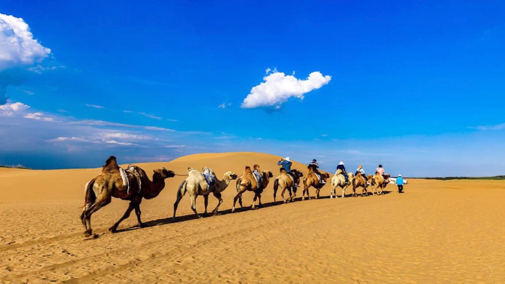 After breakfast, the journey continues westward through scenic rolling hills and semi-arid grasslands to Baotou. En route, the group stops at the Yellow River Bridge, offering sweeping views of China’s second-longest river. The highlight is the Resonant Sand Gorge, a surreal desert landscape of golden dunes that “sing” when the wind blows or when you slide down the sand. Enjoy sand-based fun including a cable car ride and optional desert activities
