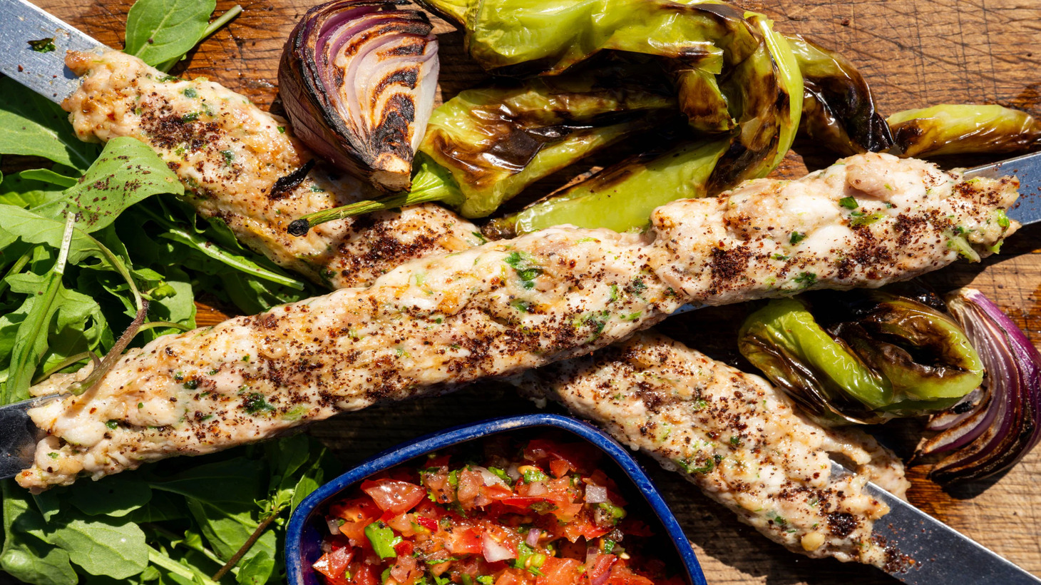 Adana Kebab is made from hand-minced lamb or a mix of lamb and beef, blended with red pepper flakes, paprika, salt, and sometimes minced fat for added richness.
