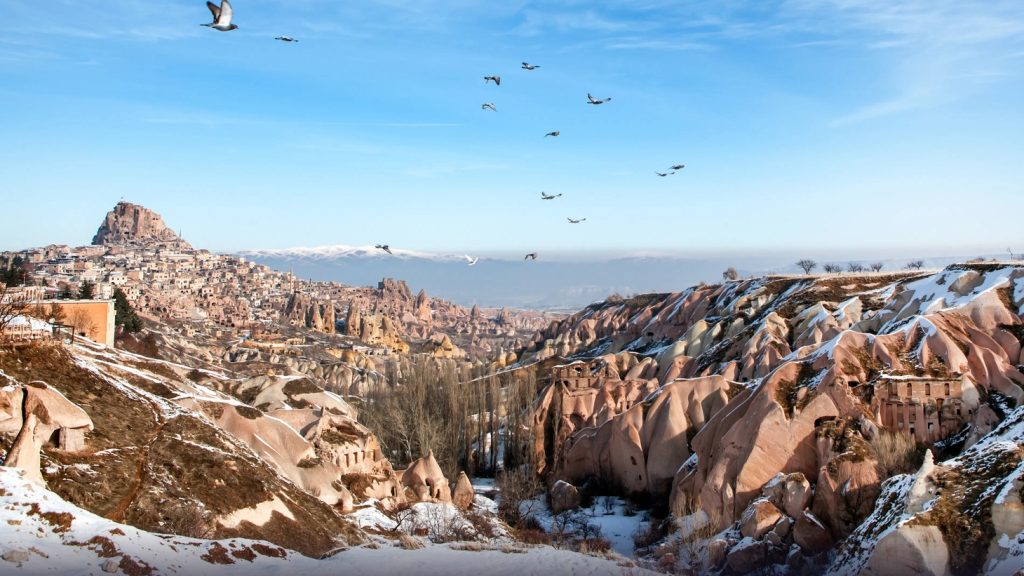 Pigeon Valley is famous for its ancient pigeon houses carved into soft volcanic rock. The valley offers stunning views, unique rock formations, and cave dwellings, making it a popular spot for hiking, photography, and sightseeing. Highlights include the Evil Eye Tree viewpoint near Uçhisar, hidden cave churches, and opportunities to spot ancient frescoes. The area is also known for its tea gardens and occasional wine-tasting stops, with many visitors enjoying the valley by foot, ATV, horseback, or from above in a hot-air balloon.